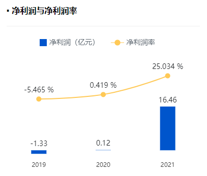 招股書顯示,公司2019年、2020年、2021年的凈利潤分別為-133億元、12億元、1.646億元。