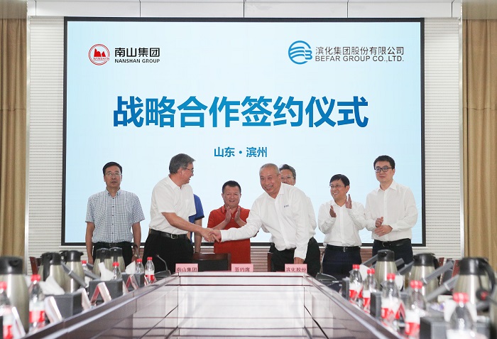 宋建波介紹,南山集團(tuán)成立于1978年,擁有完整的鋁產(chǎn)業(yè)鏈。近年來(lái),南山集團(tuán)積極推動(dòng)新舊動(dòng)能轉(zhuǎn)換,建設(shè)裕龍石化產(chǎn)業(yè)園,致力于打造國(guó)內(nèi)領(lǐng)先、世界一流的海洋環(huán)保型高端石化產(chǎn)業(yè)園。南山集團(tuán)堅(jiān)持“走出去”發(fā)展戰(zhàn)略,自2013年以來(lái),先后在新加坡、印尼開發(fā)新項(xiàng)目,涉及電解鋁、鋁深加工、倉(cāng)儲(chǔ)基地、原油加工、綠色電力等領(lǐng)域。他表示,希望南山集團(tuán)與濱化集團(tuán)充分發(fā)揮各自技術(shù)、資源優(yōu)勢(shì),在石化產(chǎn)業(yè)鏈、科技研發(fā)等方面開展更廣泛的合作,強(qiáng)強(qiáng)聯(lián)合,合作共贏。