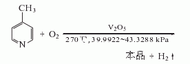使用 4-以吡啶為原料,五氧化二釩為催化劑,采用連續(xù)氧化法生產(chǎn)異煙酸甲酯,工業(yè)品異煙酸純度為 95%,上述方法的產(chǎn)量為 70-75% . 每噸產(chǎn)品消耗4-甲基吡啶1070kg.