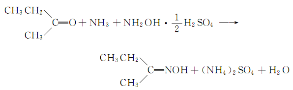 1.由甲乙酮與鹽酸羥胺反應(yīng)而得,也可與硫酸羥胺反應(yīng)而得。 2.以甲乙酮、氮化銨、硫酸為原料反應(yīng)制得,反應(yīng)式如下: