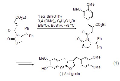 三乙基硼作為自由基引發(fā)劑,可用于天然產(chǎn)物丁內(nèi)酯(式1)的對映選擇性合成[1]. 反應(yīng)始于路易斯誘導(dǎo)的自由基加成,并生成最終產(chǎn)物。